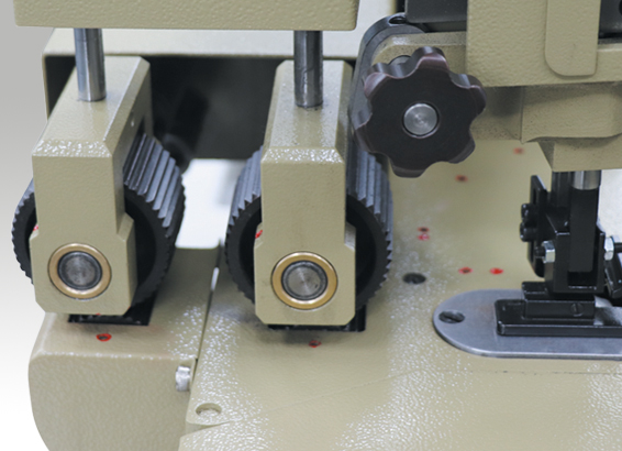 本機是在於仁81500CZ型縫紉機的基礎上研制生產的,該機不僅具備雙拖布輪牽引功能,送料幅與機器的縫合動作保持同步,確保針距、縫線的一致性以及繩索連接的可靠性,同時根據對用戶的認真了解,對設備的結構、零件的尺寸進行了重大調整,使之在縫紉直徑4-20mm之間的任何繩索時,無須更換零件,只需對設備進行簡單調整即可進行操作,從而擴大了設備的應用范圍。本機對于繩索和網的導入均提供了專門的零件,便于操作者將繩索和網片連接起來,不會出現跳針現象。